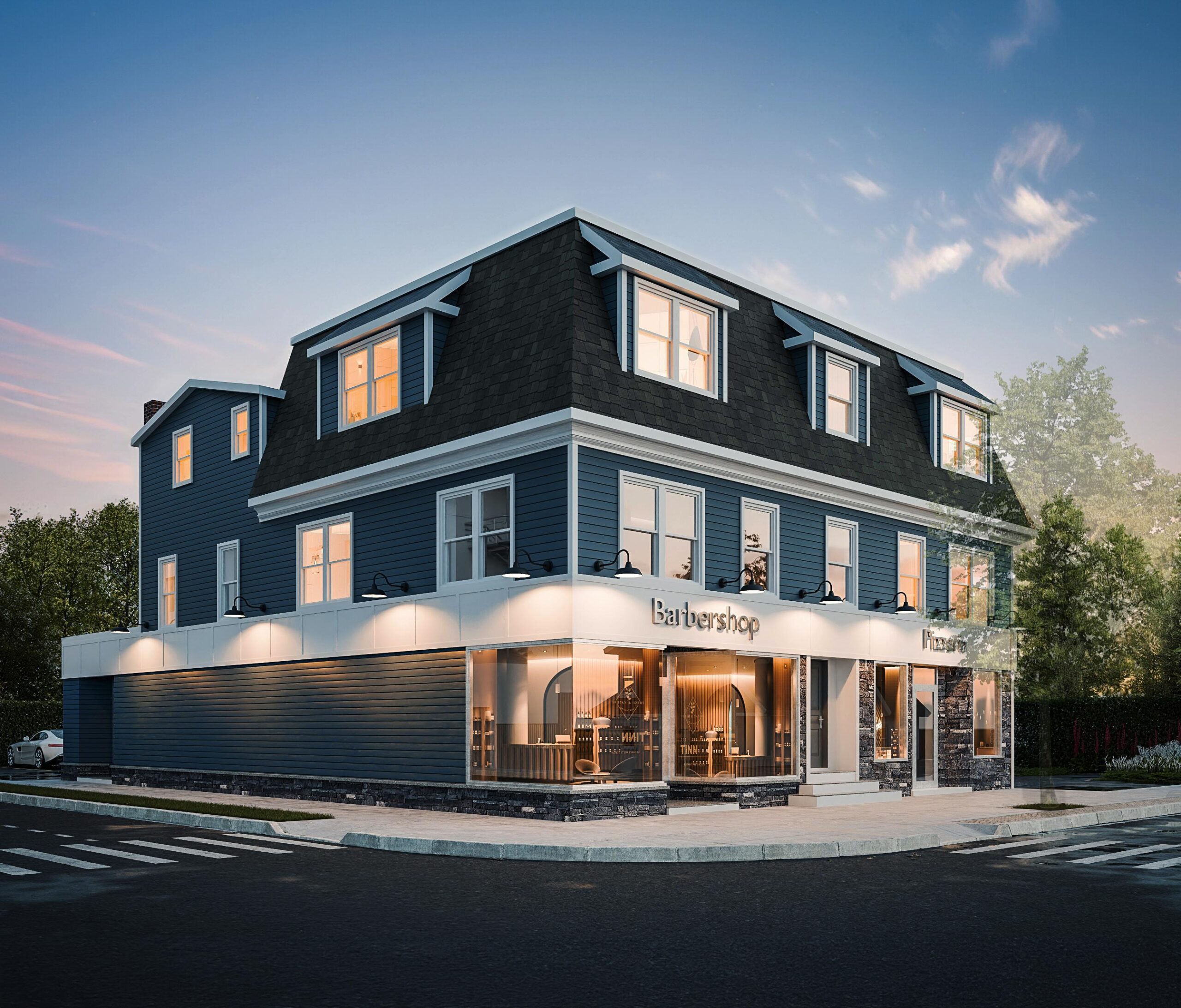 The proposal would keep the footprint of the existing building and add additions to the second and third floors of the two front buildings, for a total of five apartments: the existing four-bedroom, along with three two-bedrooms, and one one-bedroom. The current two-bedroom would become a one-bedroom and the second-floor addition above the pizzeria would be a two-bedroom, along with one studio apartment.