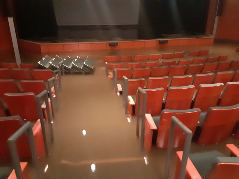 The 200-seat Hamilton Stage was closed for months after flooding from Hurricane Ida in 2021. The 14,000-square-foot facility also includes a rehearsal hall, flexible 50-seat public space and dressing room. In August 2011 — before the Hamilton Stage was built but after the former Hamilton Laundry was razed — the area suffered severe flooding as a result of Hurricane Irene.